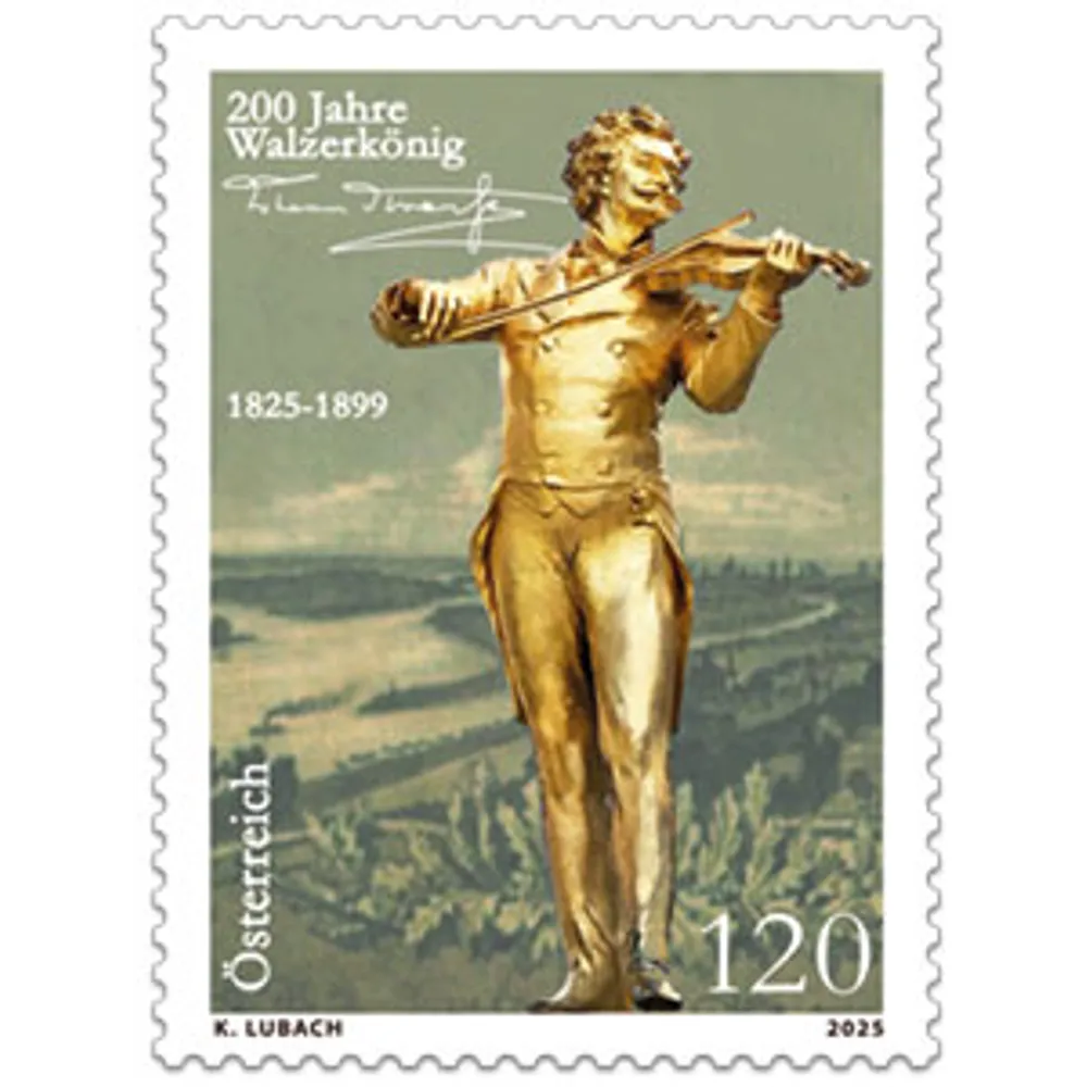 Johann Strauss (Sohn) ist bis heute einer der berühmtesten Komponisten des Landes. Die Österreichische Post ehrt ihn anlässlich seines 200. Geburtstags mit einer Sonderbriefmarke.
