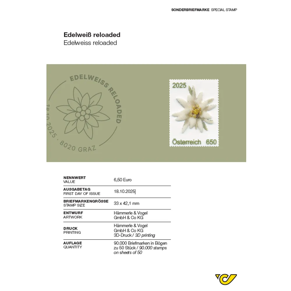 Das mythenumrankte Edelweiß gilt als Nationalblume Österreichs. Der kleinen weißen Alpenblume ist nun diese innovative technische Besonderheit gewidmet.