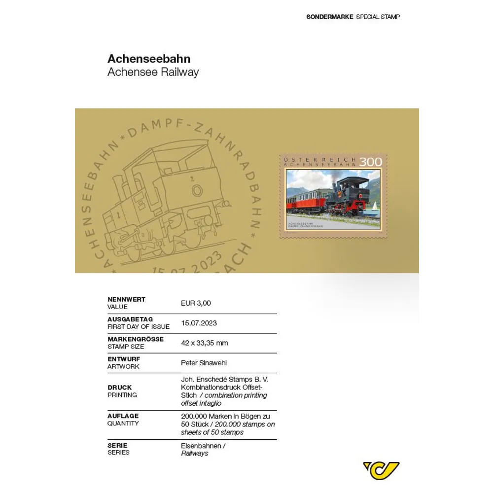Das diesjährige Motiv der Serie „Eisenbahnen“ ist die Tiroler Achenseebahn mit ihren nostalgischen Dampflokomotiven, sie ist heute eine beliebte Tourismusattraktion.