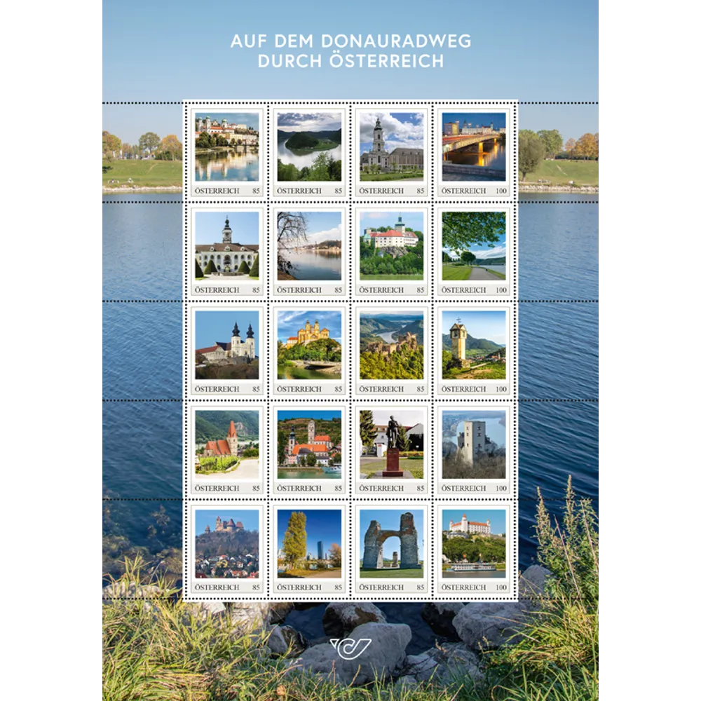 Radfahren ist gesund und umweltfreundlich, und bei der Fahrt auf dem Donauradweg kann man viele schöne Landschaften und allerlei Sehenswürdigkeiten entdecken. Mit 20 Briefmarken im Gesamtwert von 17,75 Euro für den Versand in Österreich und Europa.
