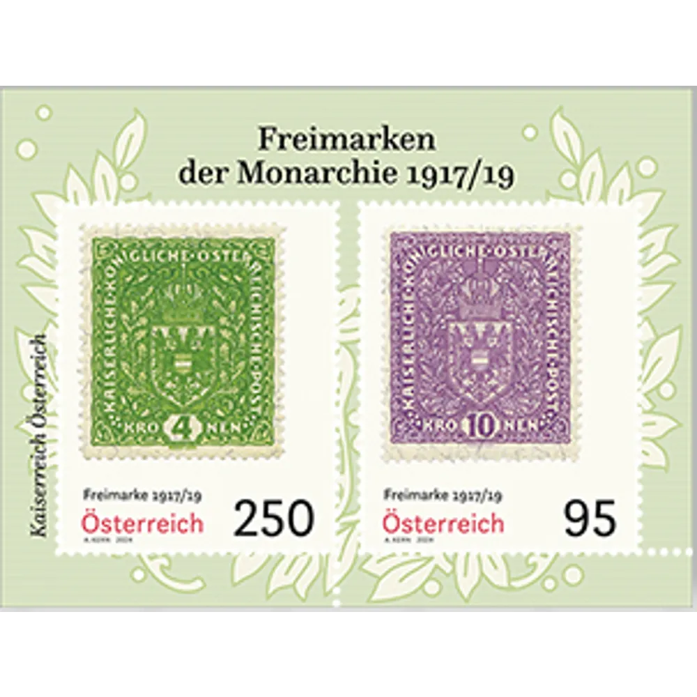 Ergänzend zu den Freimarken von 1916/18 wurden vier höhere Kronenwerte verausgabt, die eine großformatige Wappenzeichnung aufweisen.