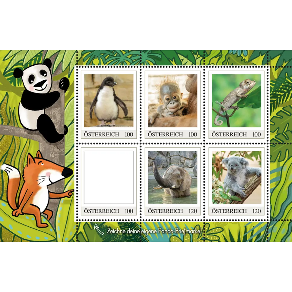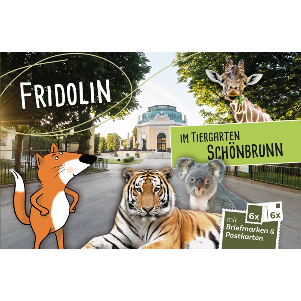 Der schlaue Postfuchs Fridolin wirft diesmal einen Blick hinter die Kulissen des bekannten Tiergarten Schönbrunn in Wien. Mit tollen Tierfotos, lustigen Illustrationen, spannenden Informationen, QR-Codes zu tierischen Videos und kniffligen Rätseln sowie 6 Postkarten und 6 Briefmarken, davon eine zum Selbstgestalten, im Wert von 6,40 Euro.
