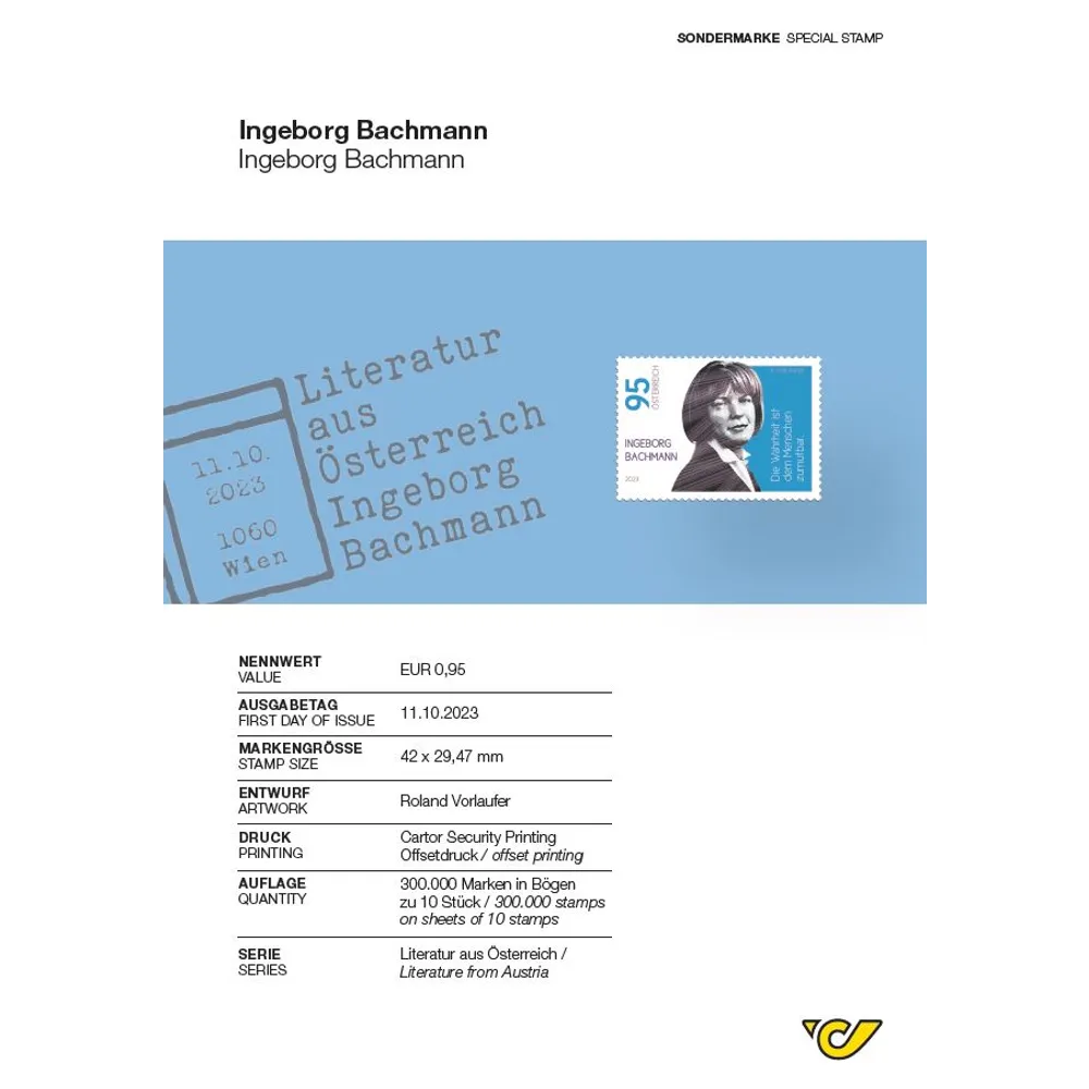 Das erste Motiv der neuen Serie „Literatur aus Österreich“ zeigt Ingeborg Bachmann, eine der bedeutendsten österreichischen Schriftstellerinnen des 20. Jahrhunderts. Sie verstarb vor 50 Jahren.