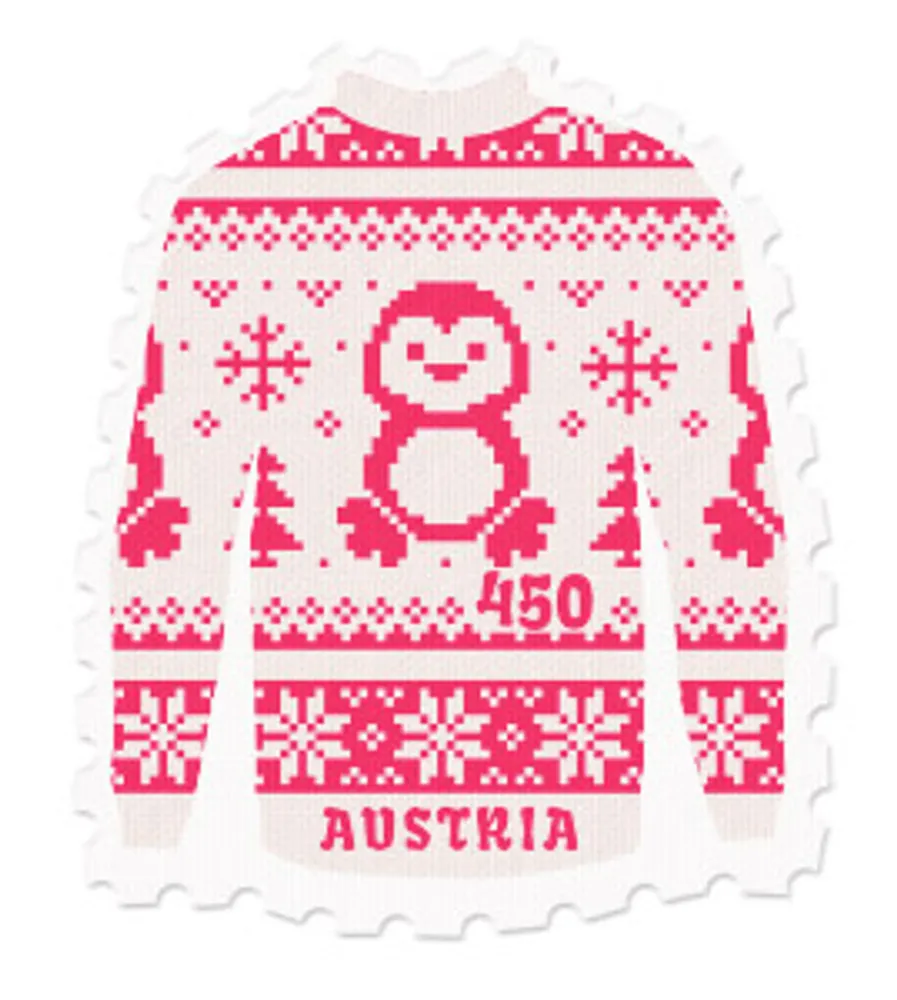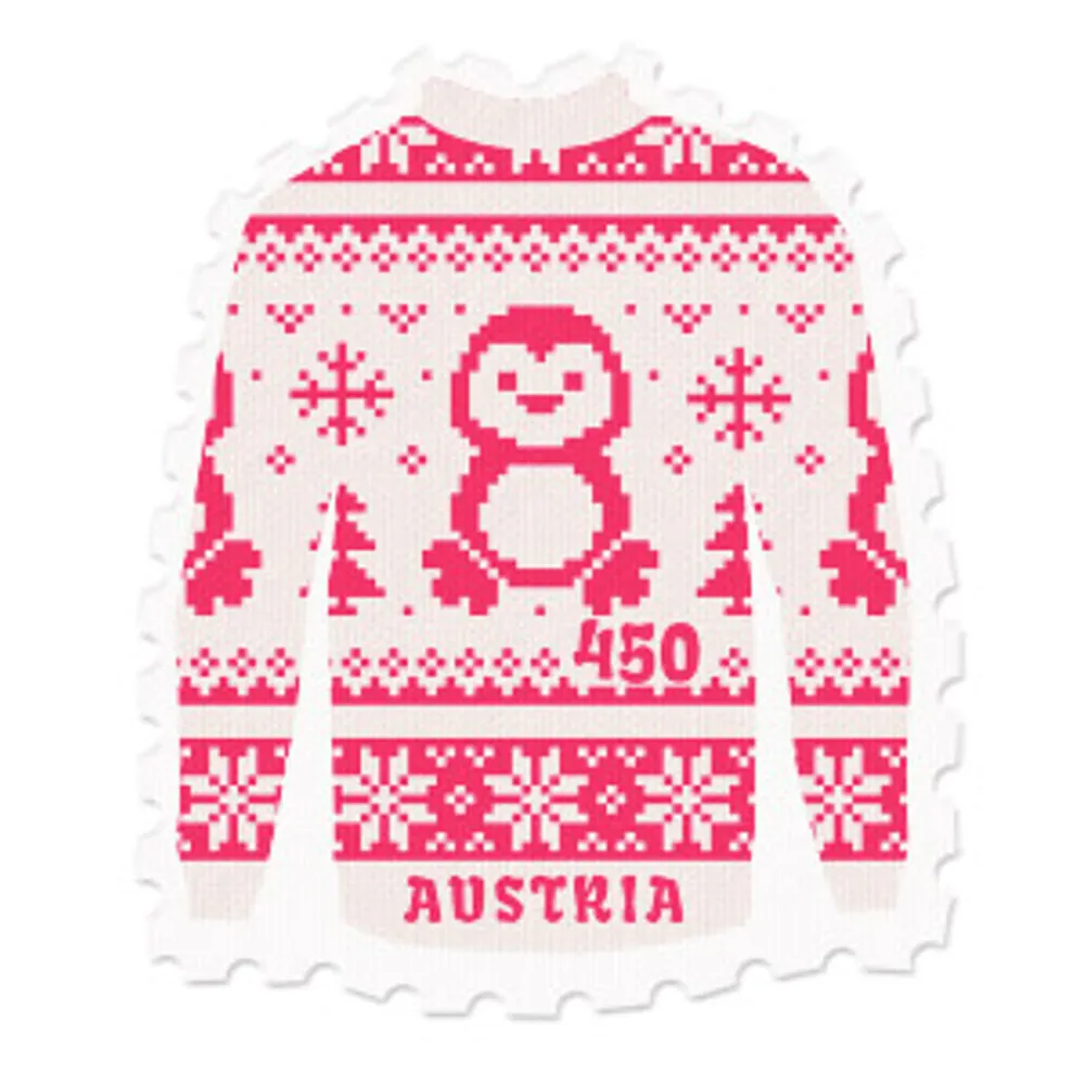 Nach dem Fäustling und der Wollhaube folgt nun der Pull-over als Briefmarke: Er zaubert Winterstimmung und macht auch in der kalten Jahreszeit Lust auf einen Spaziergang.