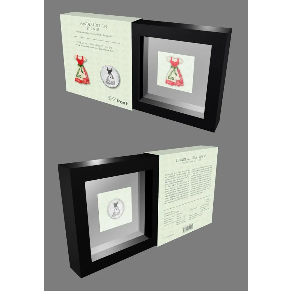 Mit der Sondermarke „Dirndl“ und einem Silbertaler mit der Abbildung des Dirndls in einem exklusiven Rahmen (Silbertalerlegierung: Feinsilber; Reinheit 999,0).