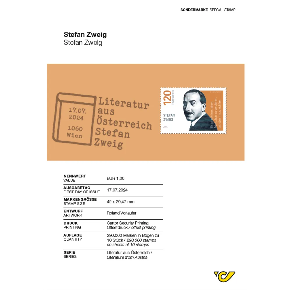 Das zweite Motiv aus der Serie „Literatur aus Österreich“ zeigt mit Stefan Zweig einen herausragenden österreichischen Literaten und Intellektuellen der ersten Hälfte des 20. Jahrhunderts.