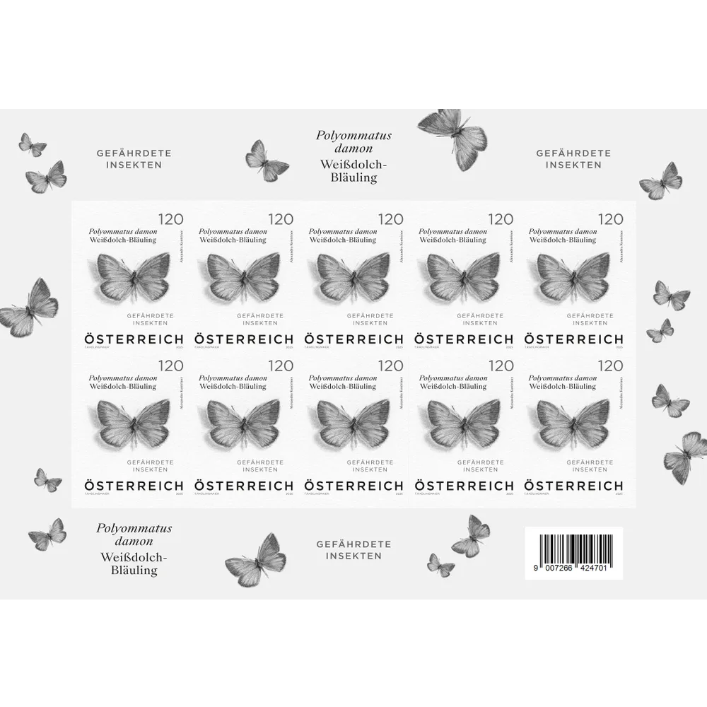 "Weißdolch-Bläuling – Polyommatus damon" Schwarzdruck kleinbogen