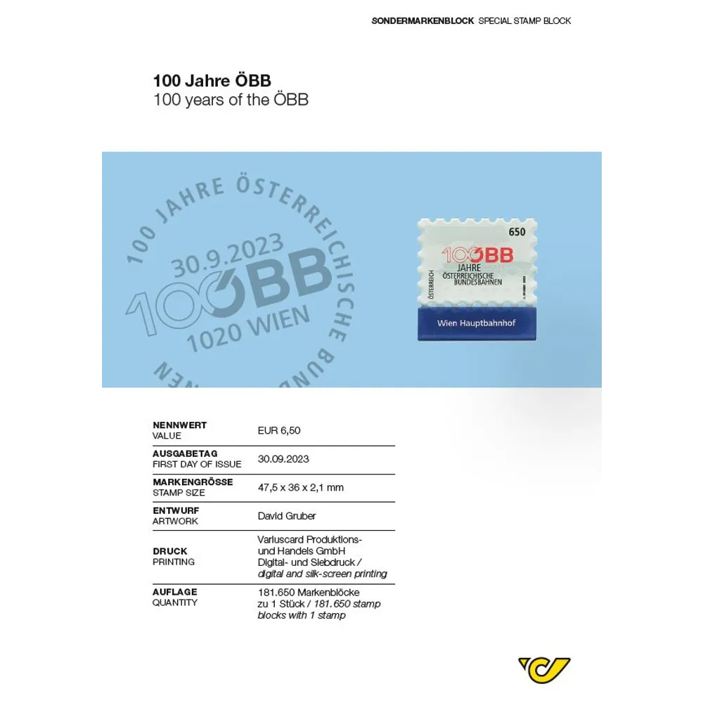 Austrian Federal Railways, or ÖBB for short, has been transporting passengers and goods for 100 years. Austrian Post is congratulating it with an unusual commemorative stamp.