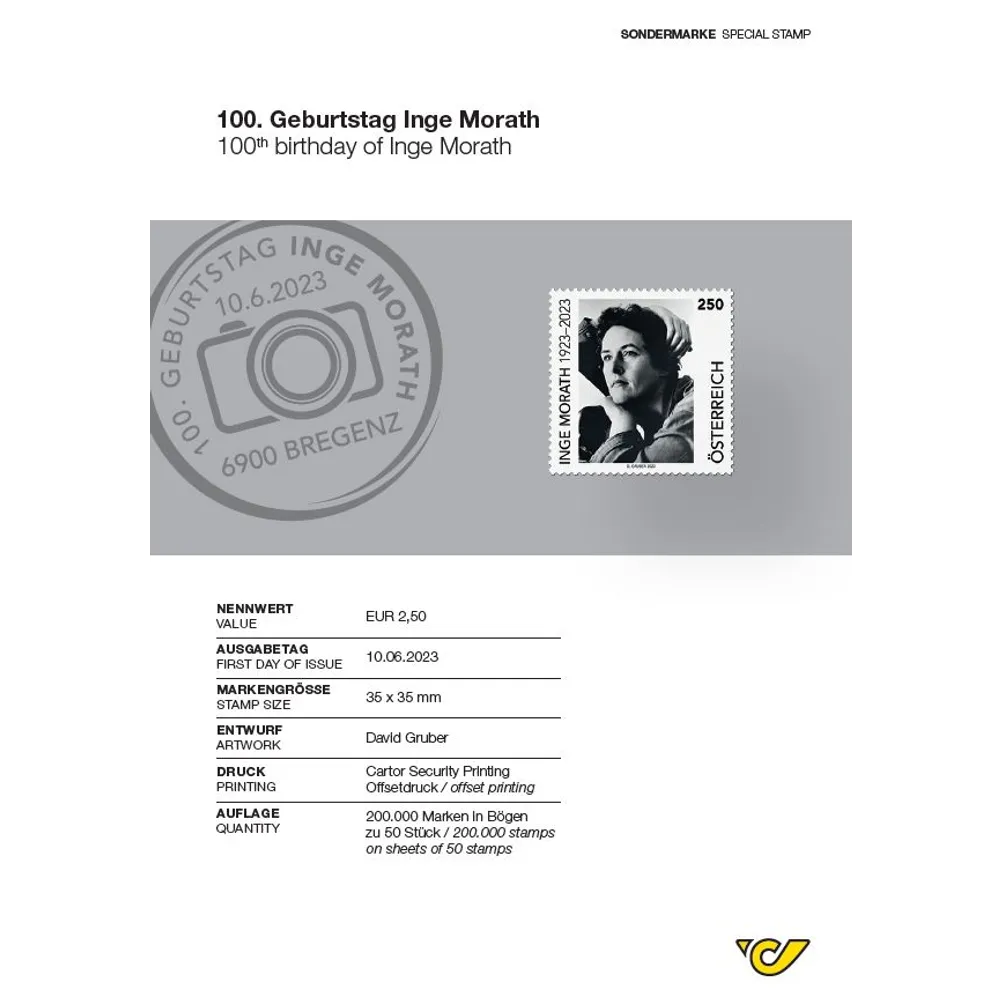 This commemorative stamp celebrates an important Austrian photographer: Inge Morath would have celebrated her 100th birthday this year.