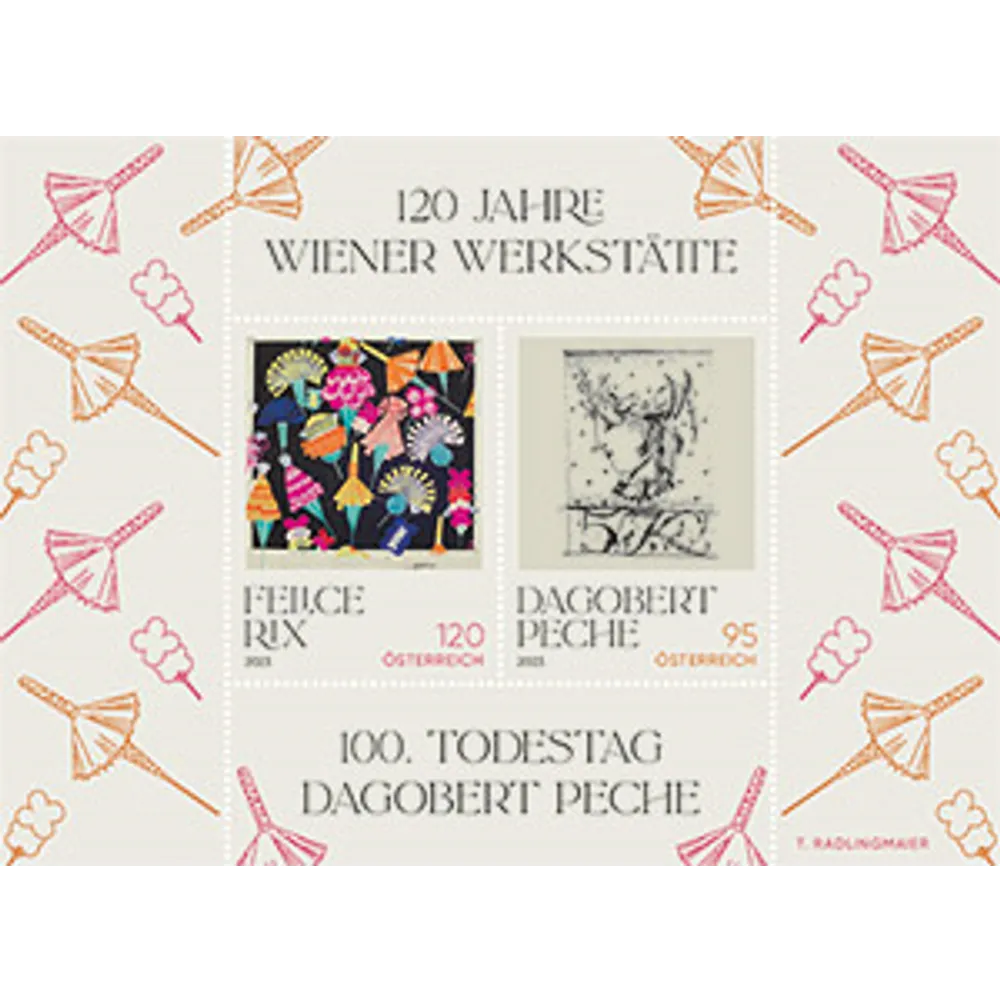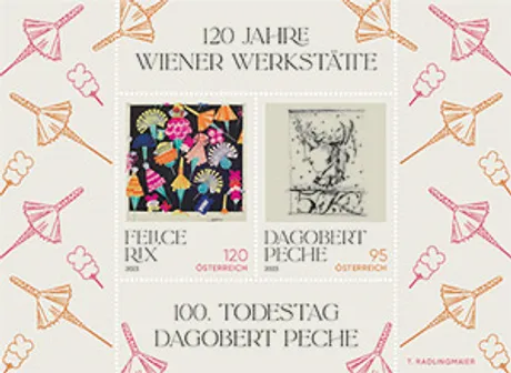 This block of stamps celebrates two anniversaries that share a common history: Dagobert Peche was an important figure in the Wiener Werkstätte.