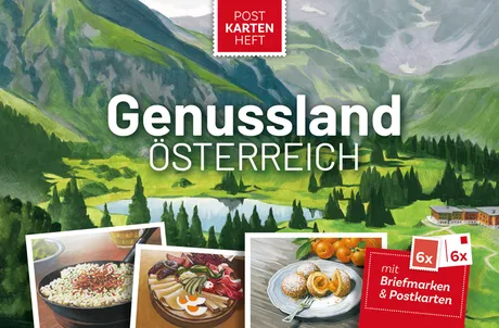 This postcard booklet with attractive motifs from our popular dispenser stamps will take you on a culinary journey through Austria. Includes six postcards and six stamps at a value of EUR 5.10.