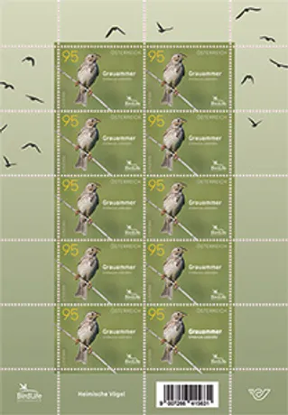 Austria’s bird of the year 2024, the corn bunting, is the first design for the new series of stamps “Austrian birds”, in which Austrian Post, in collaboration with BirdLife Österreich, will present endangered birds.