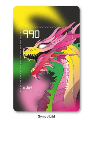 The Crypto stamp Dragon enchants with its colourful design. As usual, there are five digital twins alongside the physical Crypto stamp.