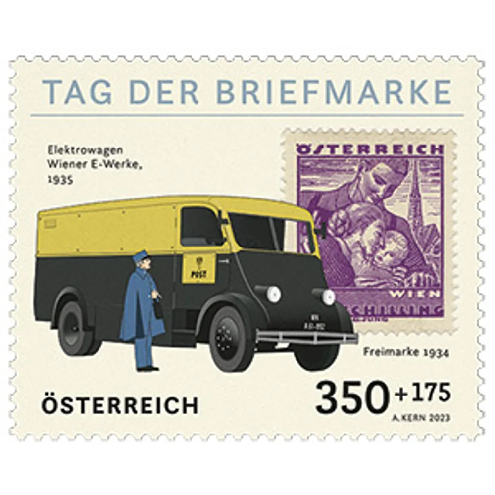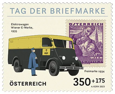 For the second design for the Day of the Stamp on the topic of how the post office in Austria has used electric vehicles, the focus is this time on the 1930s.