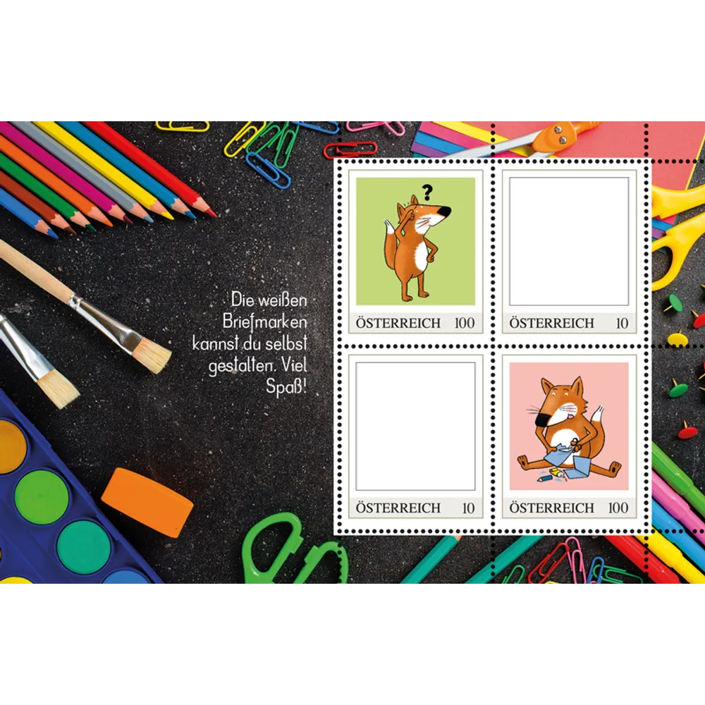 Includes a postcard and two stamps you can design yourself as well as an additional postcard and two additional stamps at a value of EUR 2.20.