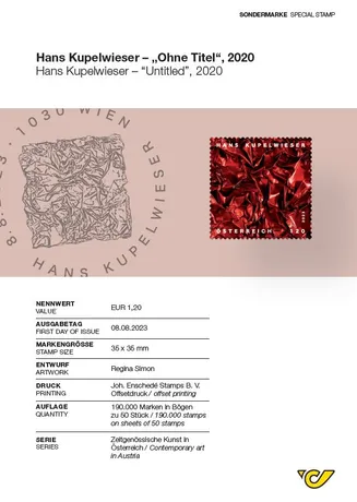 He is one of Austria’s most important contemporary multimedia artists and this year is celebrating his 75th birthday. Austrian Post is honouring Hans Kupelwieser with a special stamp.