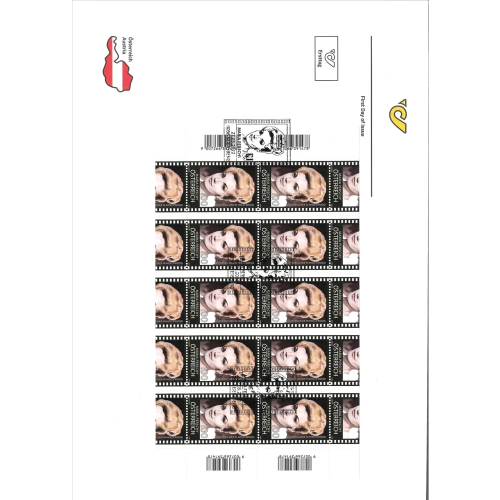 The First Day Cover for the new stamp issue with the Official Special Postmark. Maria Perschy