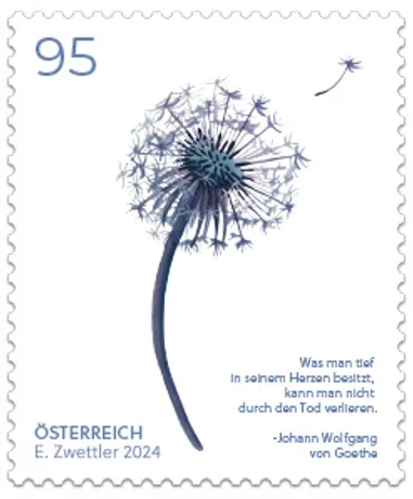 This simple mourning stamp in shades of blue and grey will give any letter of sympathy or notice of death a highly personalised feel and set the right tone for the occasion.
