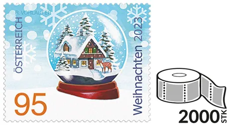 A wintry scene within a snow globe is the design on this Christmas stamp. It awakens our anticipation and excitement about Christmas, winter and snow.