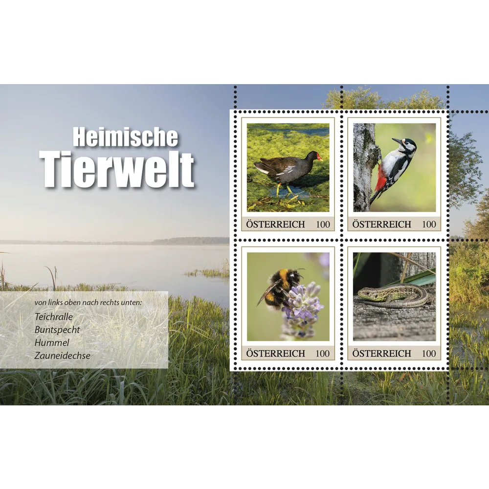 Common moorhen, great spotted woodpecker, bumblebee, sand lizard