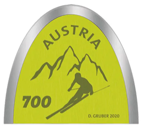 As a “skiing nation”, Austria has a long tradition in skiing as a sport. Fittingly, this year’s stamp on the topic of technical innovation impresses with both its shape and its colour: a ski tip made with a genuine ski coating.