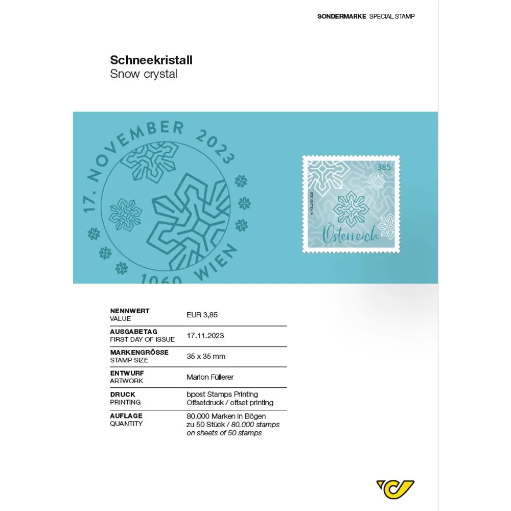 Even if winter does not bring snow to the whole of Austria, these drawings of snow crystals on stamps can be used to send the season’s greetings.