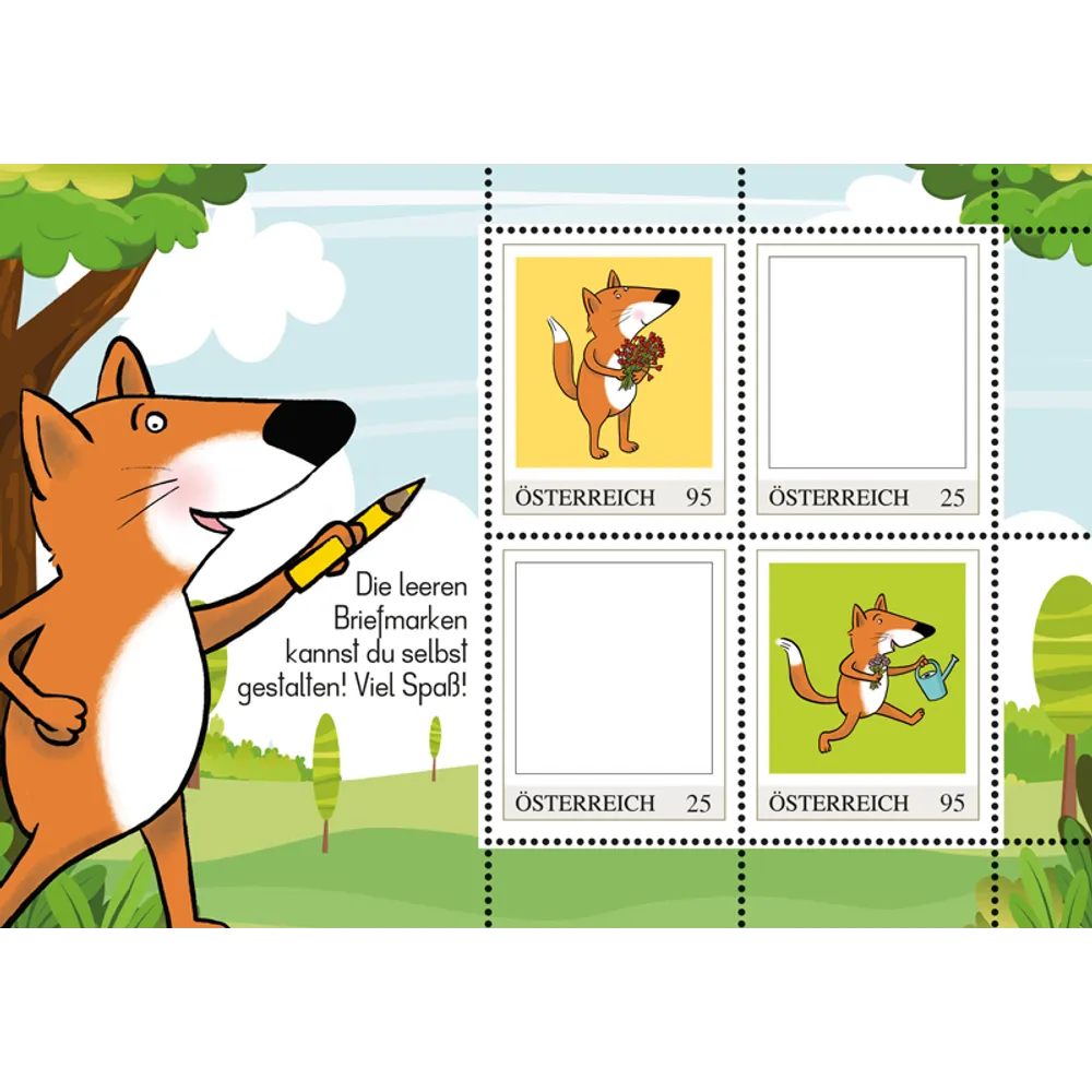 One postcard and two stamps for your own design and an additional postcard and two more stamps at a value of 2.40 euros.