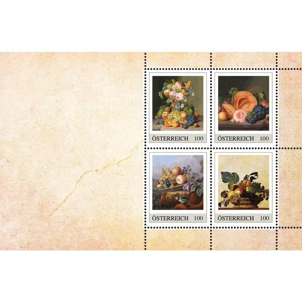 The artistic still lives depicted in this booklet feature a cornucopia of delightfully staged fruit in striking colours. Includes four postcards and four stamps at a total value of EUR 4.