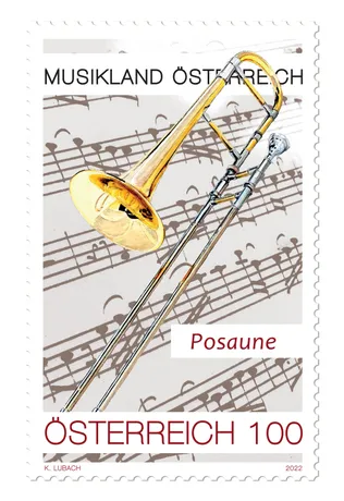 The subject of this year’s stamp in the “Austria, land of music” series is the trombone, a truly impressive brass instrument belonging to the trumpet family.